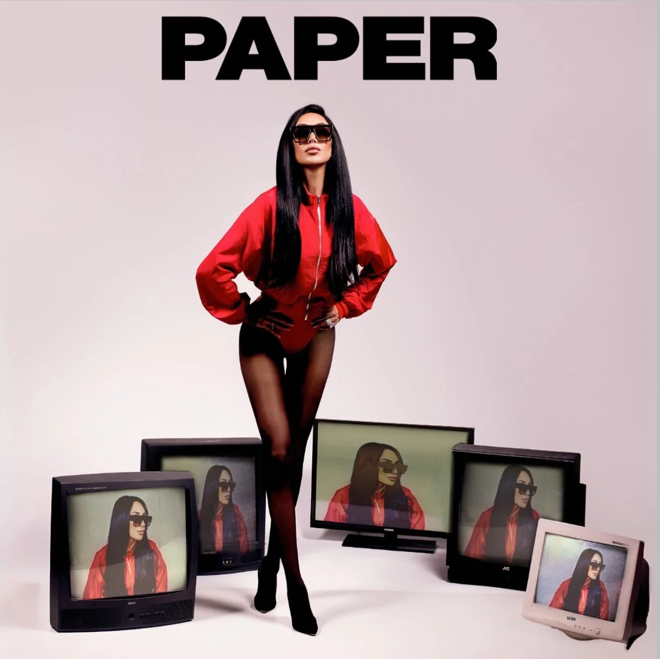 For this PAPER Magazine editorial with Durana Elmi, I wanted to play with the idea of visibility and control. PAPER lives in that space of pop culture and media saturation, so I built the set around repetition—having her image echoed across CRT monitors.